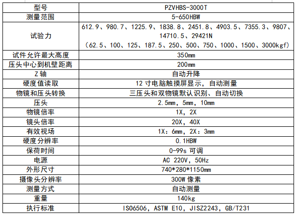 摘要: PZVHBS-3000T高級視覺全自動布氏硬度計內置觸摸屏,微型電腦,使參數設定、結果顯示更加直觀,操作更加便捷,也避免了顯微鏡的光源給眼睛帶來的刺激和視覺疲勞,減少了測量誤差。選擇相應的標尺開始后,硬度計將自動選擇壓頭及物鏡,平臺自動上升,施加完試驗力后自動回到聚焦面,壓痕清晰顯示并自動測量,實現了布氏測量的全自動化。 產品介紹: 1.機身使用優質鑄鐵一次澆鑄成型,配合以汽車烤漆處理工藝,外形圓潤美觀; 2.一鍵式操作、全自動測量; 3.同時具備了3個球壓頭及兩組物鏡,測量不同的試樣時,不再有頻繁更換壓頭的煩惱,光學結構嚴密、放大倍率高,使所需觀察的表面非常清晰; 4.自動升降平臺采用精密結構,平穩性高,開始測量后自動上升,施加完試驗力后自動回到聚焦面,直接進行測量,實現了一鍵自動化的功能; 5.內置CCD圖像自動測量系統, 觸摸屏操作顯示, 可預置試驗力保持時間、顯示測量壓痕長度、硬度值、硬度值的測量范圍、測量次數等等; 6.硬度測試結果可生成WORD或EXCEL報表,可直接保存或外接打印機輸出,方便用戶日后翻閱研究; 7.具有軟件硬度值修正功能,可以在一定范圍內直接對硬度值進行修正; 8.可自動進行全硬度標尺的單位轉換; 9.電子閉環控制施加試驗力,完全實現了加荷、保荷、卸荷的自動化運行; 10.精度符合GB/T 231.2、ISO 6506-2和美國ASTM E10標準。 應用范圍: 1、測定黑色金屬、有色金屬及軸承合金材料的布氏硬度; 2、硬鑄鋼、鋁合金、銅合金、可鍛鑄件、軟鋼、調質鋼、退火鋼、軸承鋼等。 技術參數: